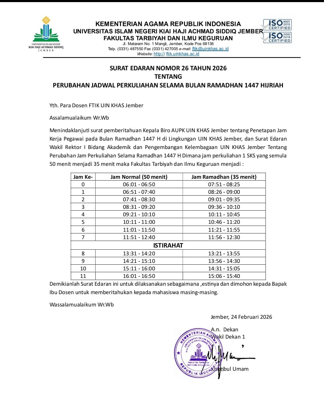 Informasi Teknis Perkuliahan di Bulan Ramadhan